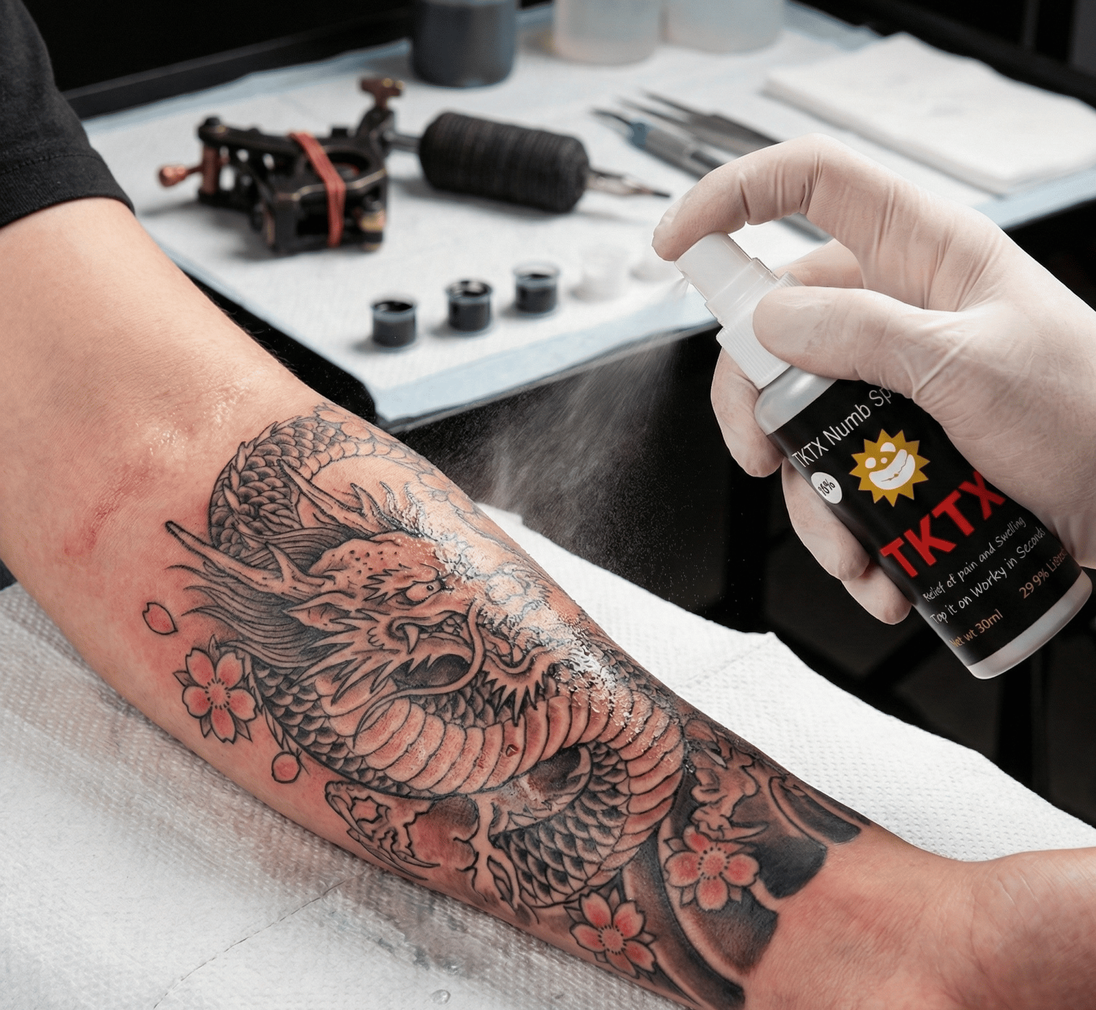 Ce spray n’est pas destiné à être utilisé avant votre séance. Si vous avez besoin de quelque chose à appliquer avant votre rendez-vous, je vous recommande d’utiliser une crème anesthésiante spécialement prévue à cet effet. Cette crème puissante et très efficace doit être appliquée sur la peau environ 1 heure avant votre intervention pour garantir un effet maximal. Alors, pour le pré-tatouage, optez pour la crème anesthésiante.